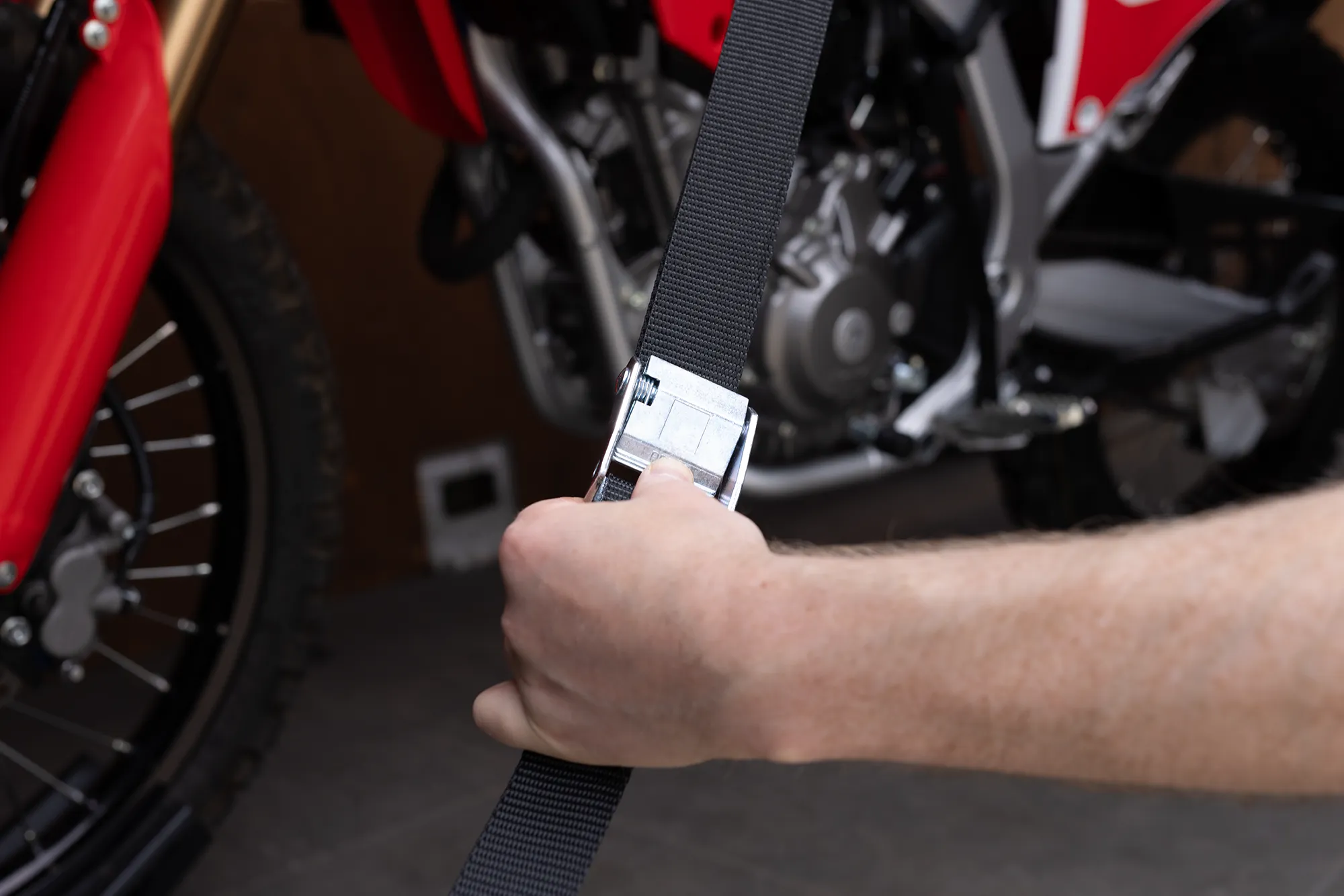 The Bar Strap Kit comprises of a handlebar tie-down harness and straps to keep your motorcycle immobile whilst being transported.