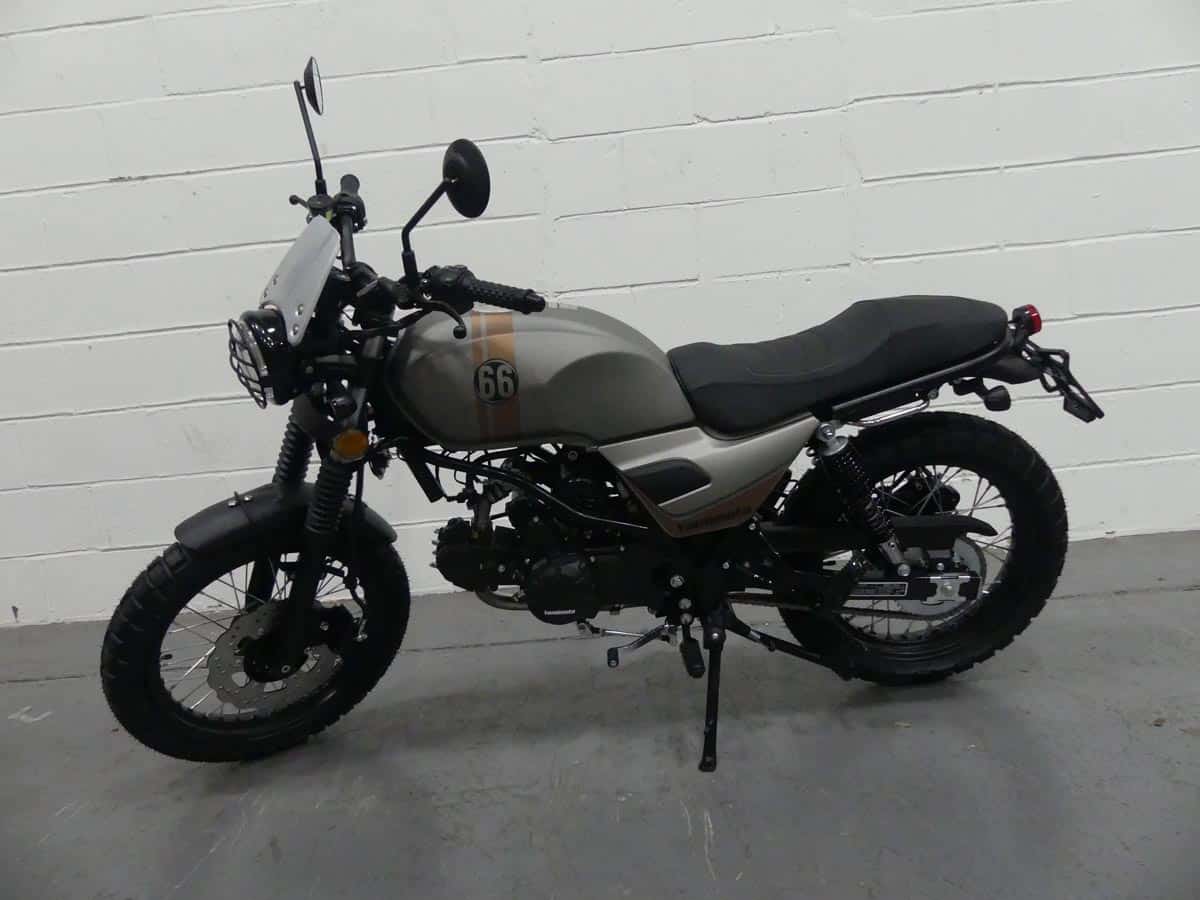 Introducing the latest model of the Yamimoto F60 retro scrambler – A blend of timeless retro design with modern technology. This exceptional bike not only offers robust build quality and an impressive spec including front and rear Disc brakes and rugged Kenda Dual sport tyres.